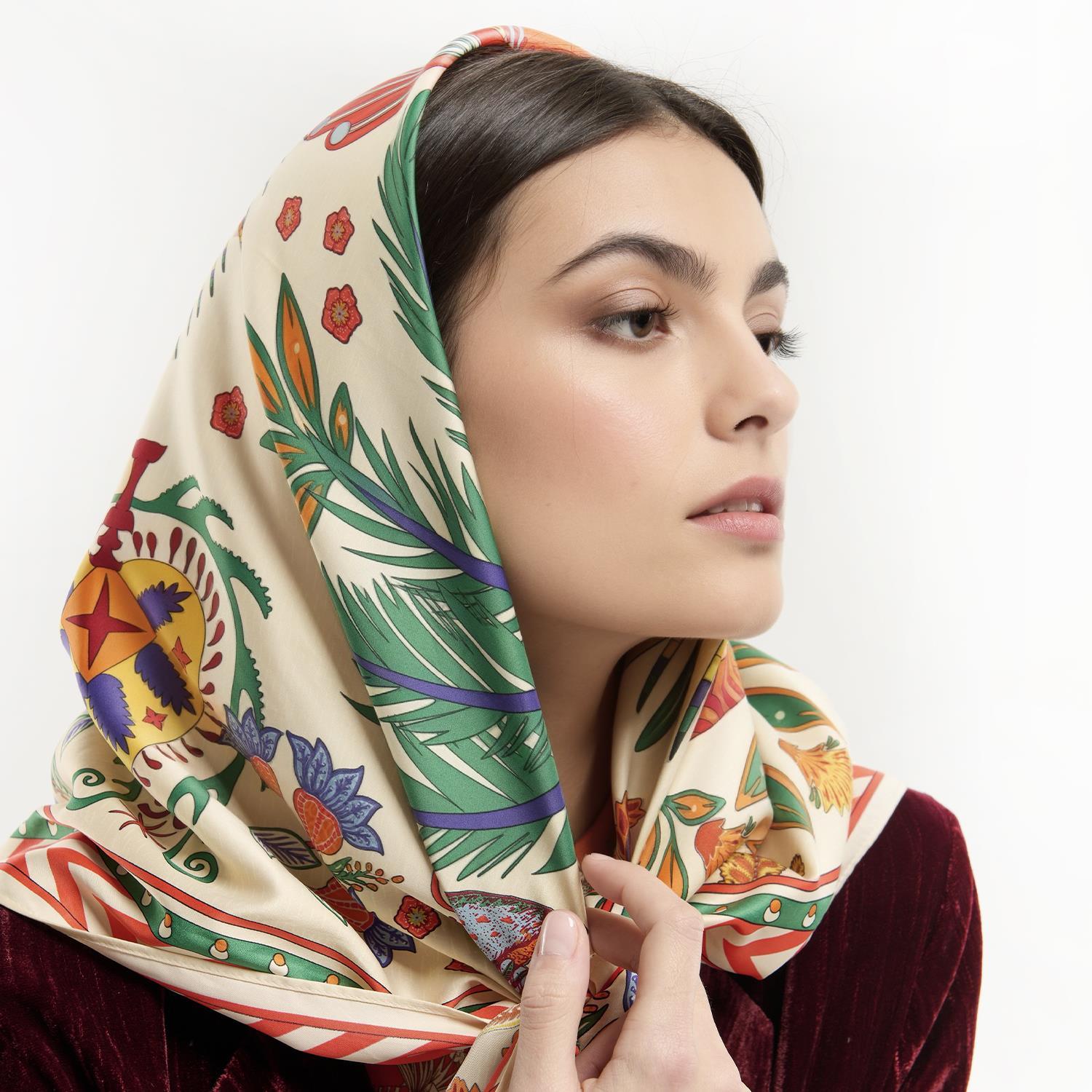 Magic India Beige Square Scarf