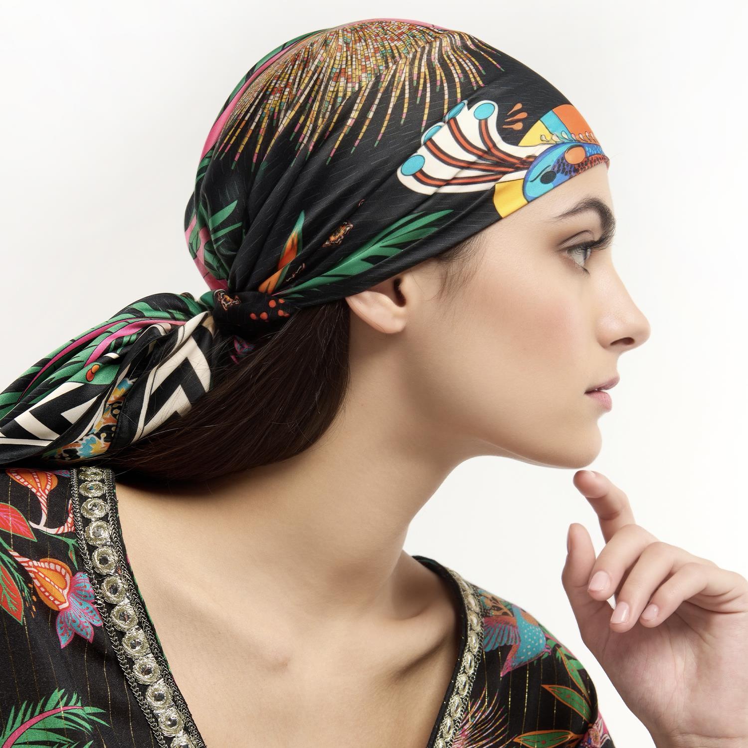 Indulge in exotic allure with the Magic India Print Black Medium Square Scarf by Wild Paris. Crafted from recycled polyester, this exquisite scarf showcases a captivating print inspired by the mystical charm of India. Perfect for draping elegantly over your shoulders or styling as a chic headscarf, this versatile piece effortlessly elevates any ensemble.
